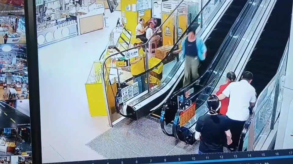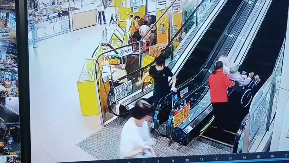 當(dāng)天,一位中年人推著坐輪椅的八旬老人準(zhǔn)備搭乘扶梯前往超市樓層。行至扶梯中段時(shí),輪椅后輪突然輕微打滑,老人身體下意識(shí)前傾,推輪椅的中年人瞬間慌了神,手忙腳亂間帶著顫抖喊出 “有人能幫下忙嗎!”。此時(shí),正在入口處引導(dǎo)顧客掃碼、維持秩序的李于龍,第一時(shí)間聽到了呼救聲。他來(lái)不及多想,立刻放下手中的工作,循著聲音快步?jīng)_向扶梯,三步并作兩步跑到老人身旁,一手穩(wěn)穩(wěn)托住輪椅扶手,一手輕輕扶住老人的肩膀,慢慢穩(wěn)住輪椅重心。
